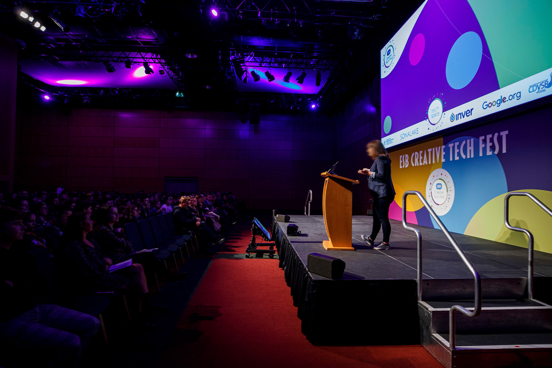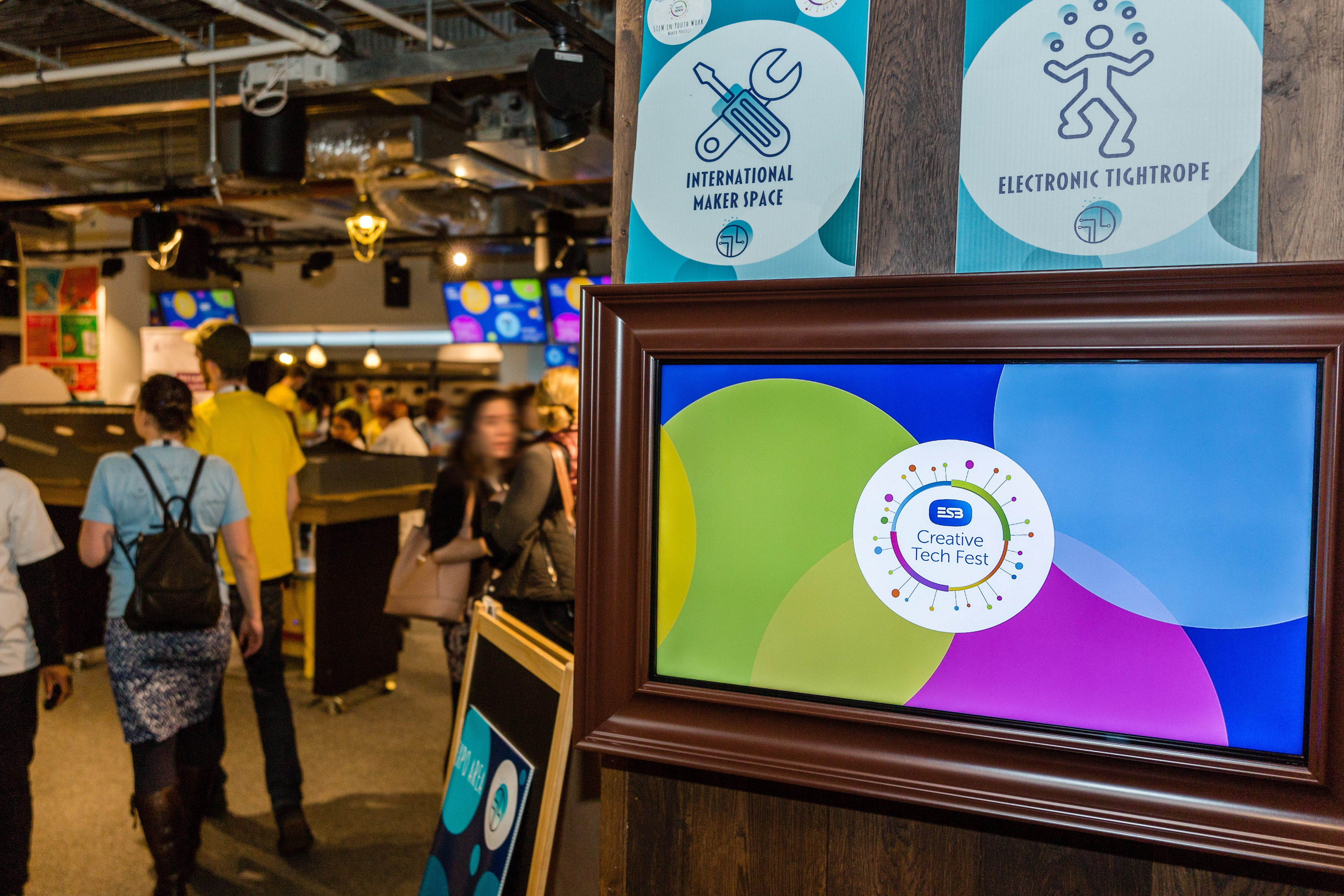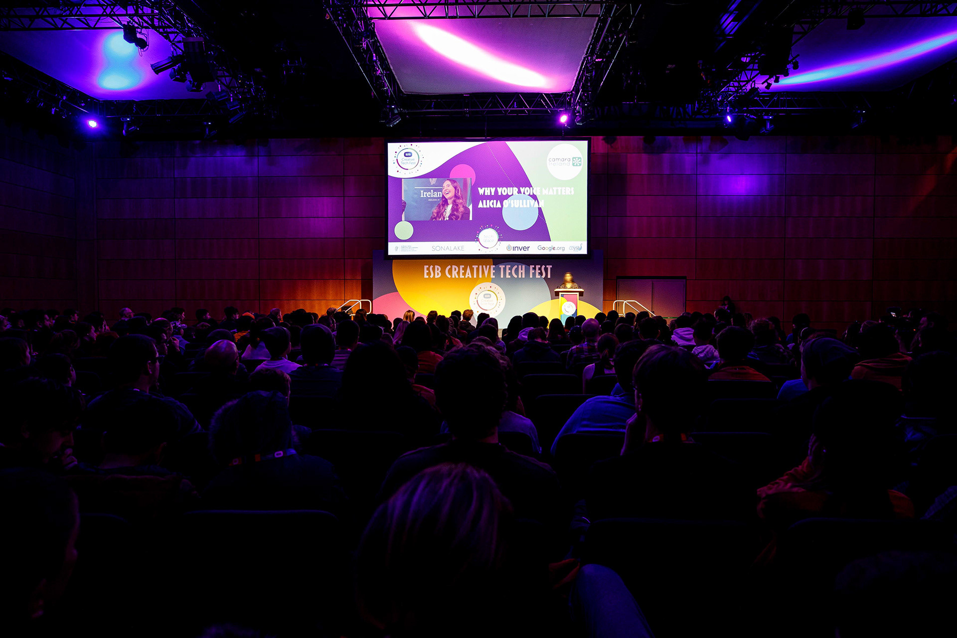 Nous avons conçu l’identité visuelle et tous les supports de Creative Tech Fest, un événement annuel réunissant participants, jeunes, enseignants et encadrants à travers l’Irlande pour créer, inventer et s’inspirer via des ateliers et expositions numériques. Notre travail a couvert l’ensemble des éléments visuels, des badges aux supports imprimés, en passant par le motion design et les visuels de scène, traduisant les valeurs fondamentales de la marque et son esprit créatif et innovant dans un système visuel cohérent et immersif.