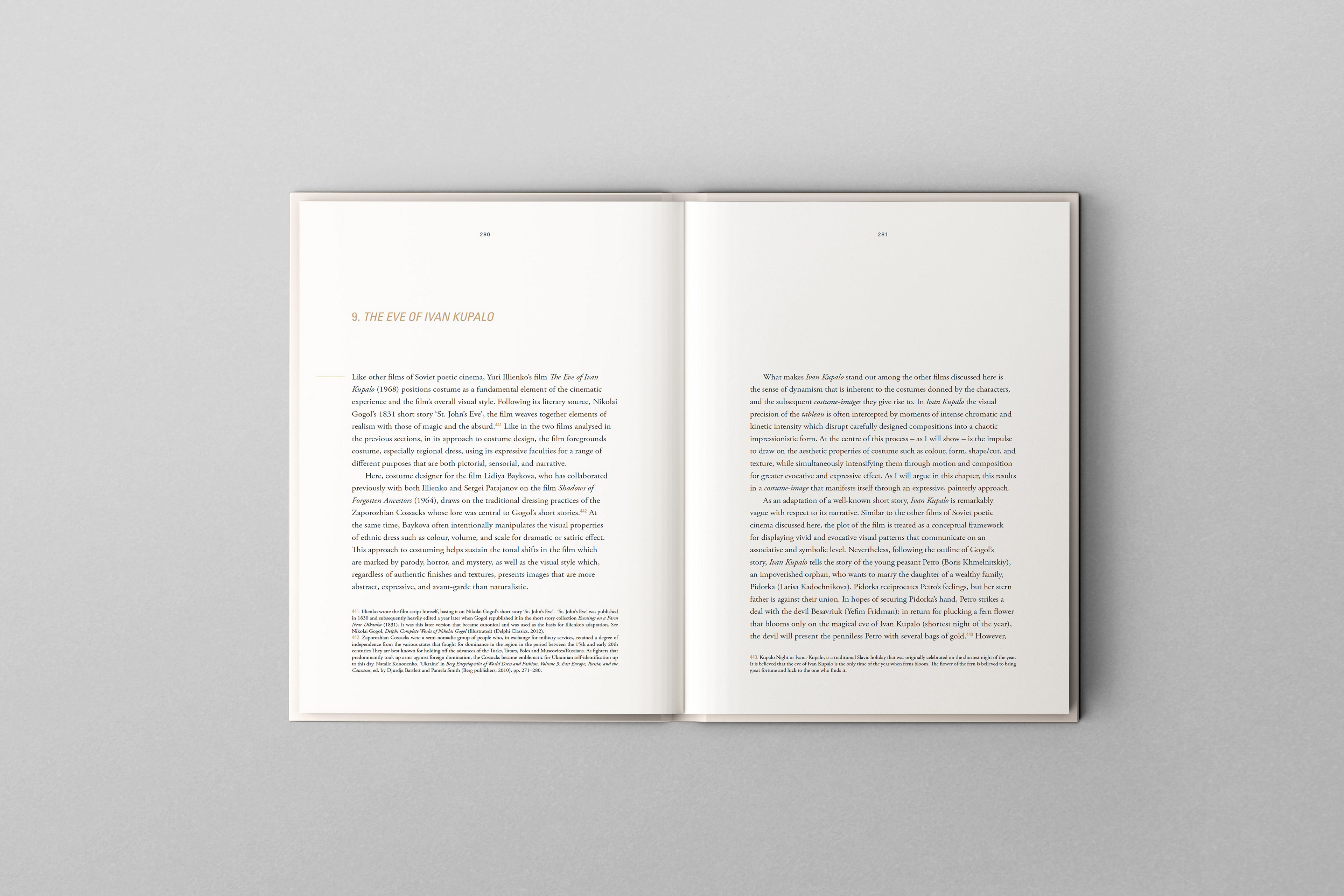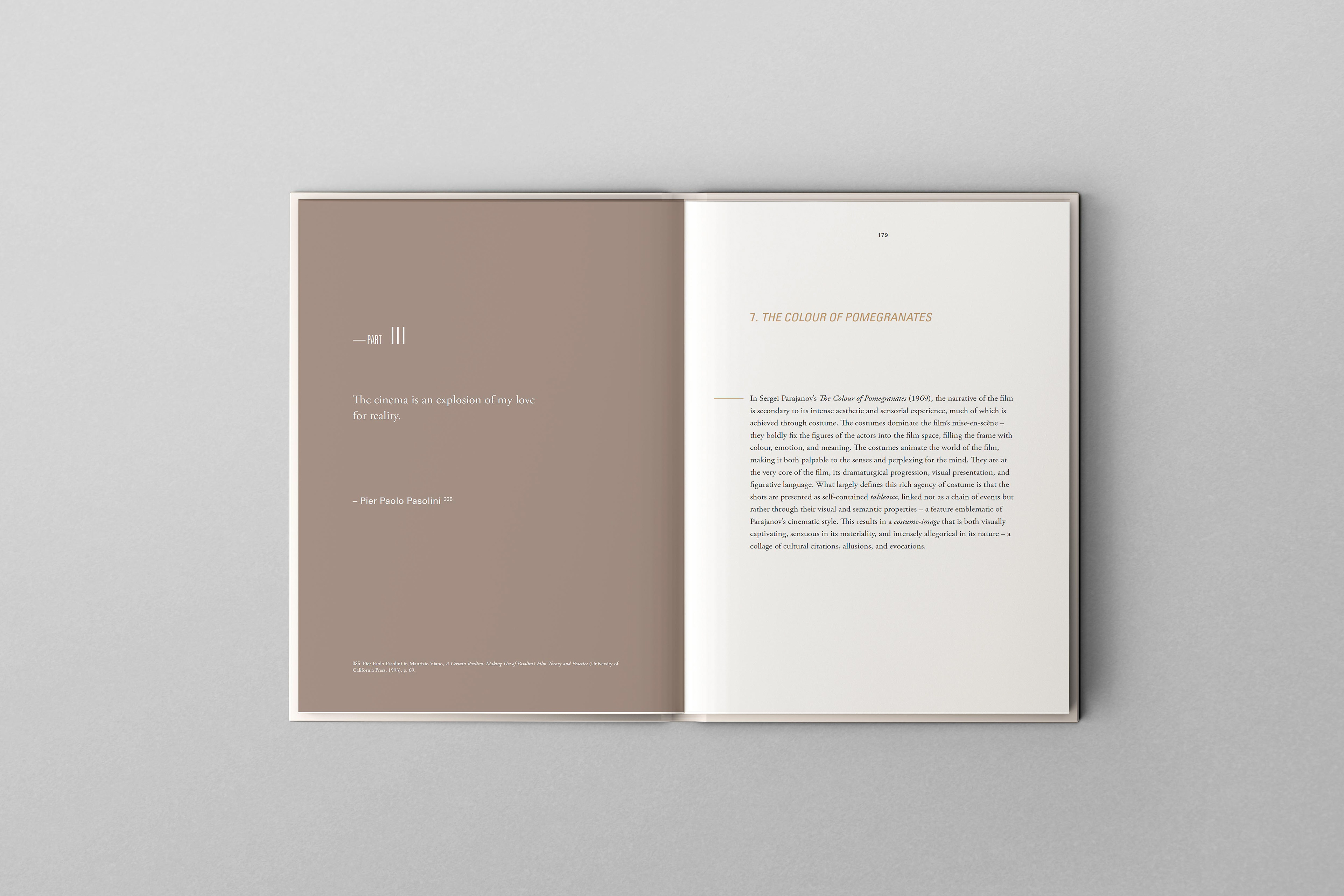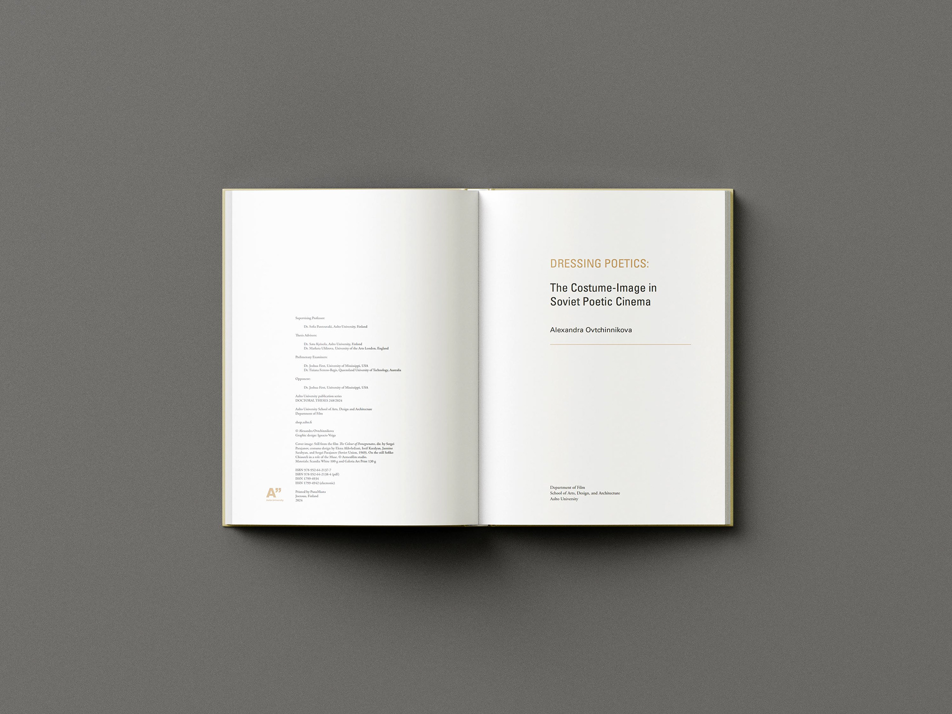 Nous avons conçu ce livre pour Aalto Books, rattaché à l’Aalto University School of Arts, Design and Architecture à Helsinki. La publication Dressing Poetics: The Costume-Image in Soviet Poetic Cinema explore le rôle expressif du costume dans le cinéma poétique soviétique. Nous avons traduit la profondeur visuelle et conceptuelle de la thèse dans un format raffiné et contemporain, en utilisant la typographie, la mise en page et l’imagerie pour refléter le dialogue entre costume et narration, offrant ainsi au lecteur une expérience enrichissante et immersive.